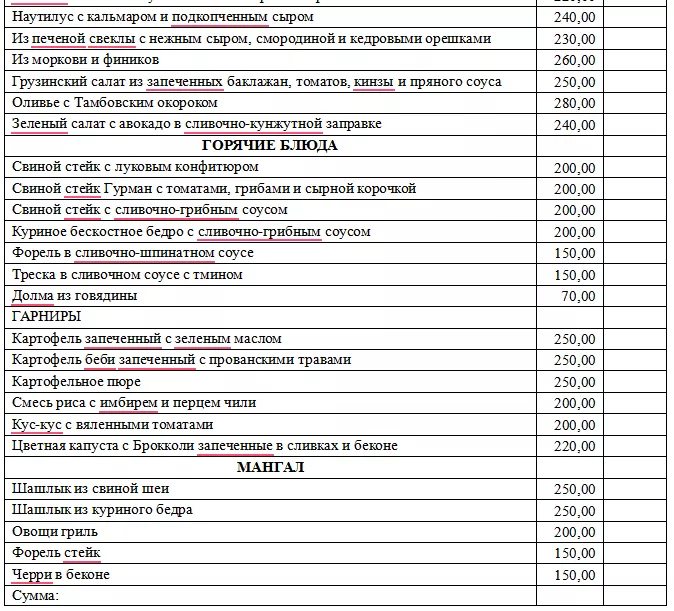 Отдельное внимание уделяется напиткам. В список включены минеральная и питьевая вода в стеклянной и пластиковой таре, соки, морсы, лимонады, а также чай и кофе разных сортов.