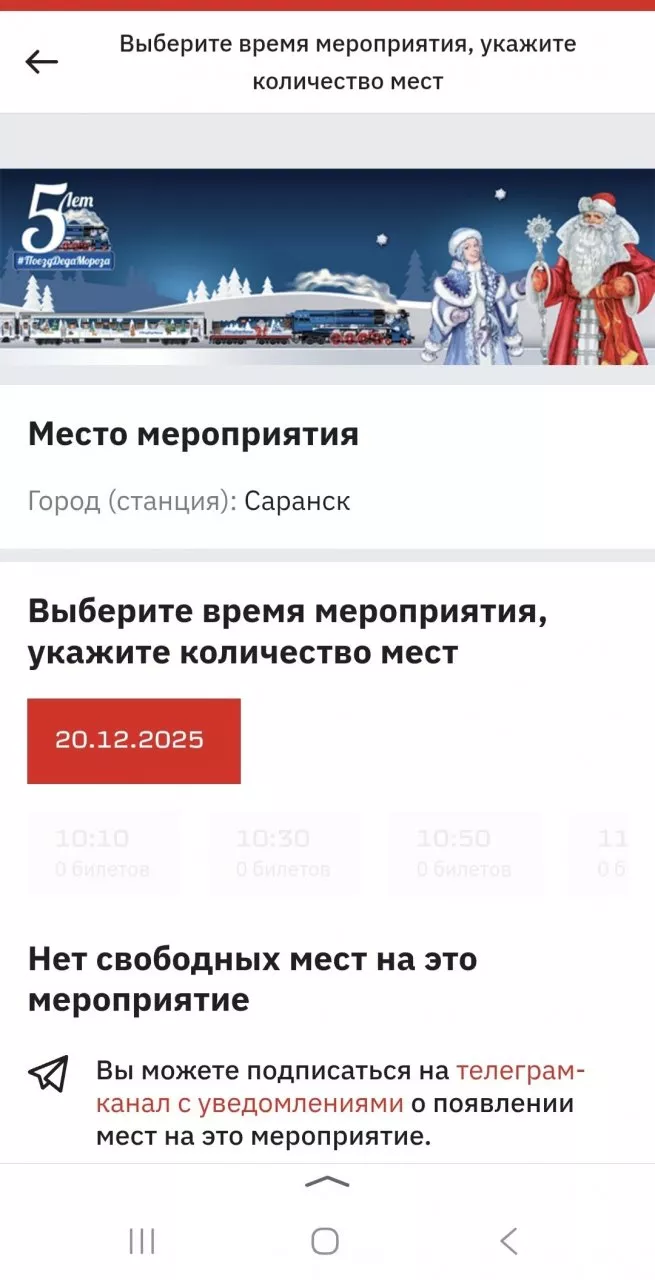 Жительница Тамбова заранее подготовилась к покупке билета на «Поезд Деда Мороза». С её слова, она даже установила будильник на время, когда начинались продажи. Женщина постоянно обновляла страницу, чтобы не упустить шанс. Однако, как только появилось окно для проверки наличия билетов, их уже не оказалось.