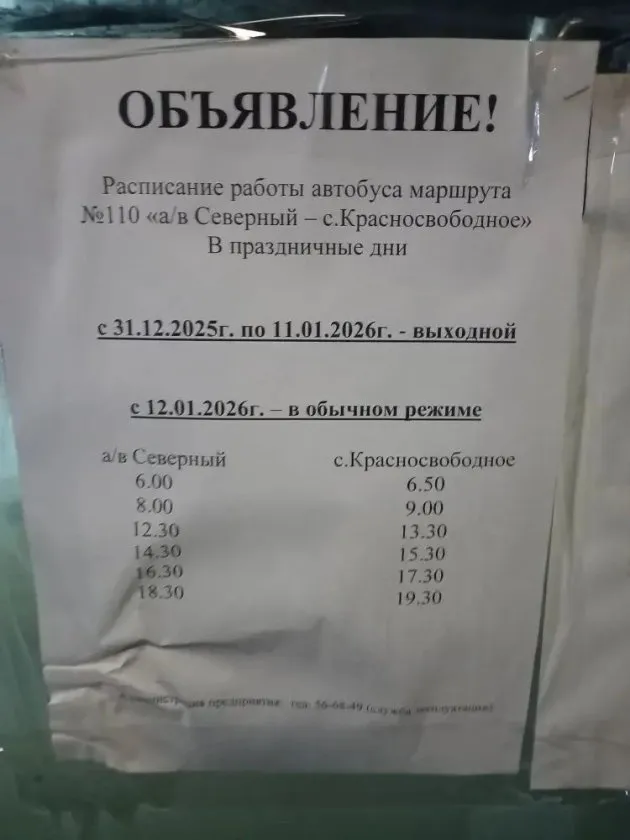 История с отменой поездов — не единственная транспортная проблема в области. Другая жительница из села Красносвободное пожаловалась на работу местного автобуса №110. По её словам, автобус часто не выходит на маршрут без предупреждения, из-за чего люди не могут уехать в город. Особенно остро стоит вопрос о рейсах в выходные дни, когда многим нужно на работу.