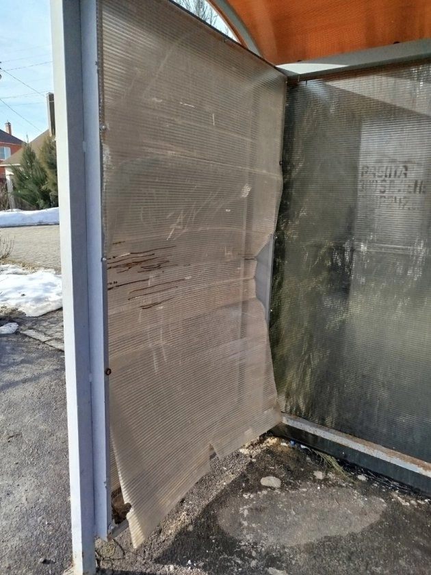 Другая женщина обратила внимание на опасность, подстерегающую пассажиров общественного транспорта. На остановке «Радужная» выбит поликарбонат, а на остановке «Телецентр» разбито стекло, которое рассыпалось на мелкие осколки.
