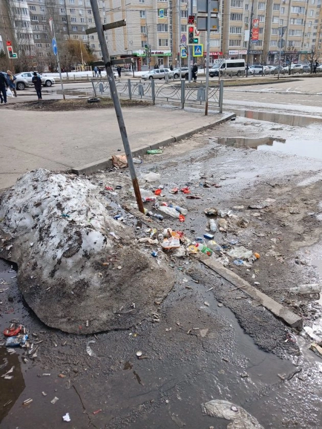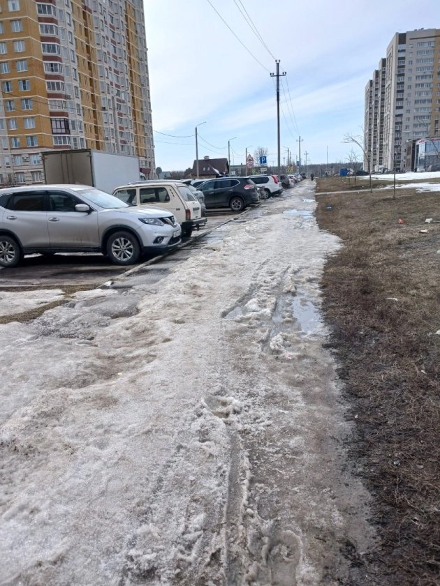 В то время как в городе уже вовсю тают сугробы и обсуждаются весенние проблемы, этот участок остается неубранным, что вызывает нарекания у пешеходов.
