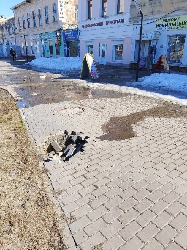 Опасность подстерегает и пешеходов. Житель города сообщил о провале на Коммунальной, 30. Мужчина едва не попал туда ногой, что свидетельствует о неудовлетворительном состоянии пешеходных зон и асфальтового покрытия, которое не выдержало перепадов температур.