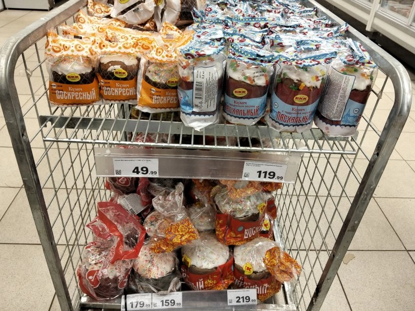 Есть и другие данные. Специалисты фискальной платформы «Такском» проанализировали более 58 миллиардов кассовых чеков и пришли к выводу: средняя стоимость набора для кулича в 2026 году составила 1051 рубль — на 6% больше, чем год назад. В их расчёт, правда, входили и цукаты (182 рубля), и изюм (195 рублей), и творог для пасхи (109 рублей), и даже краски для яиц (51 рубль). А готовый магазинный кулич они оценили в среднем в 113 рублей.