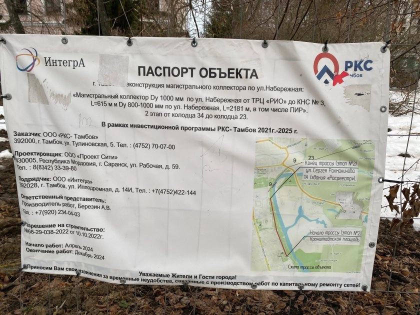 Подрядчик, компания «РКС-Тамбов», назвал конкретные сроки. Работы по благоустройству набережной должны начаться 10 апреля и завершиться к 10 июня. Именно столько времени потребуется, чтобы убрать последствия ремонта коллектора и привести территорию в порядок.
