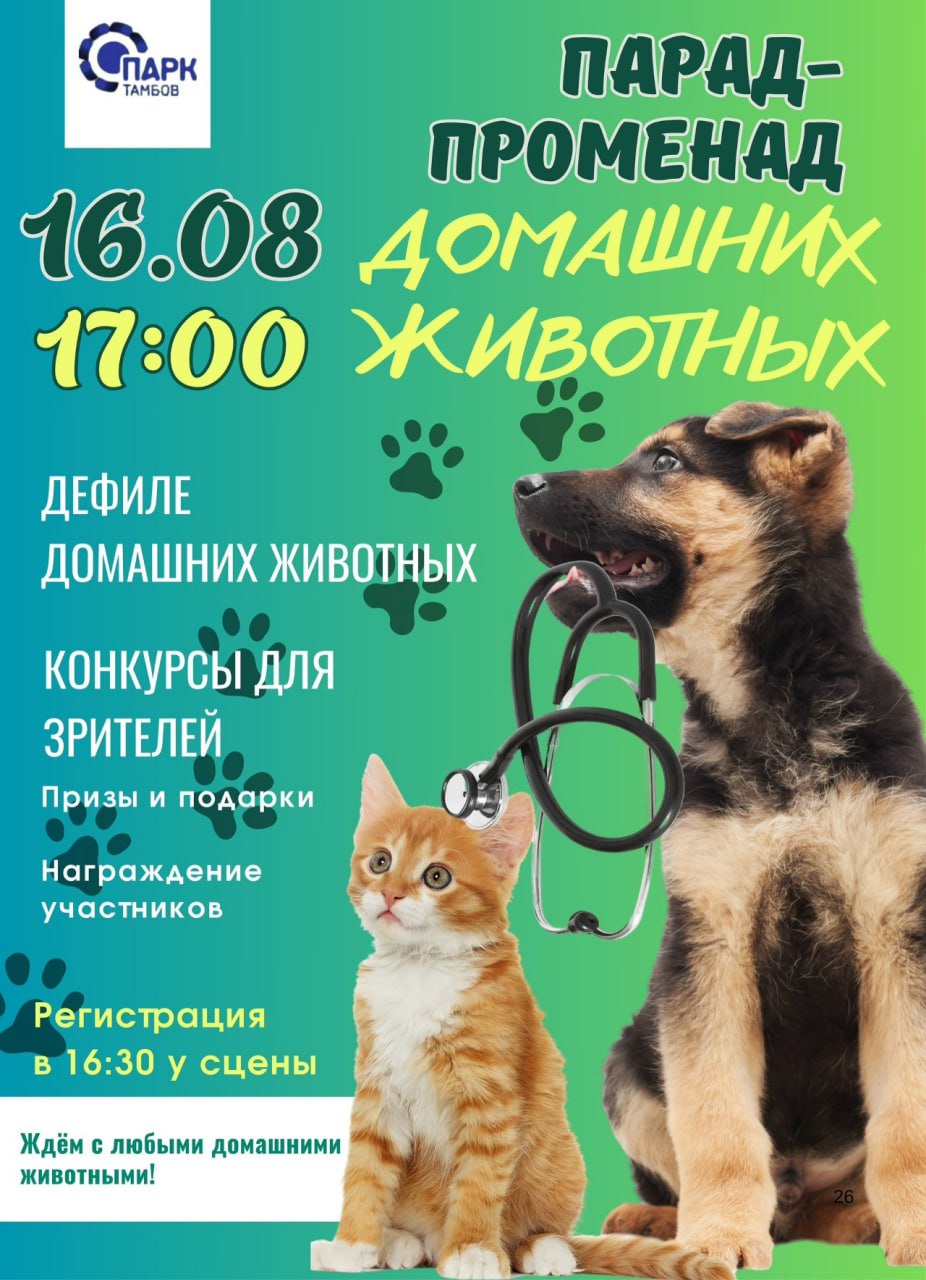 Участники парада смогут пройтись по аллеям вместе со своими любимцами, рассказать их истории и объяснить, почему именно они стали частью семьи. Гостей ждут новые знакомства, обмен опытом и приятная атмосфера единомышленников.