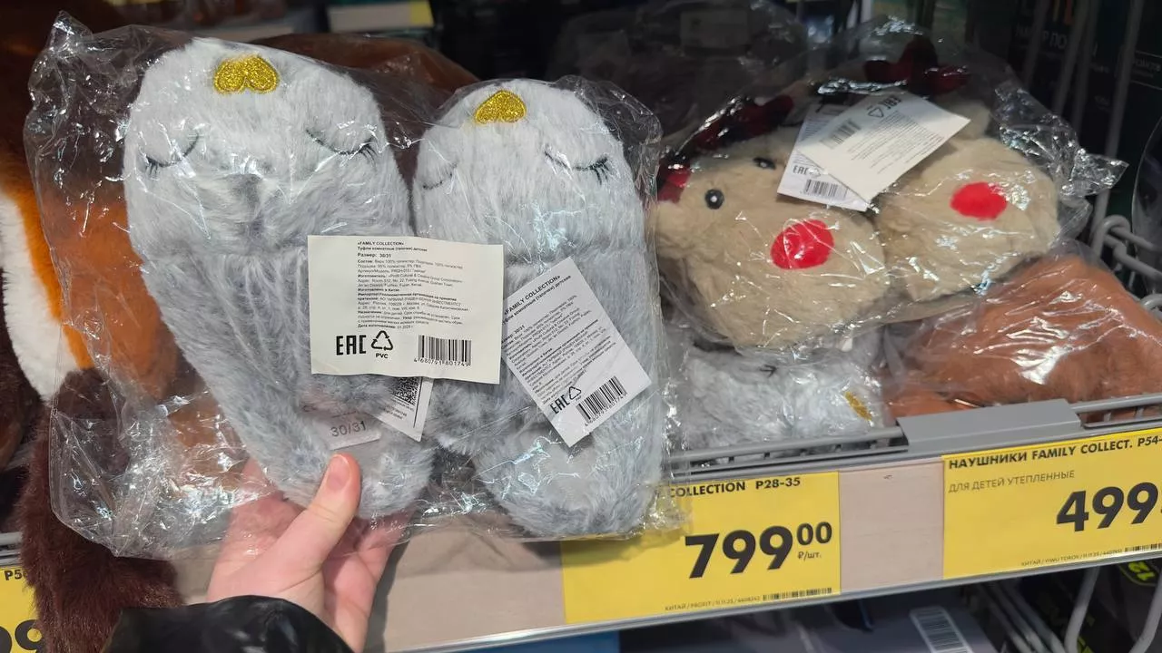 Для уютных зимних вечеров приглянулись тапочки‑кролики — мягкие, с ушками и пушистой отделкой.