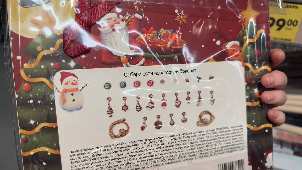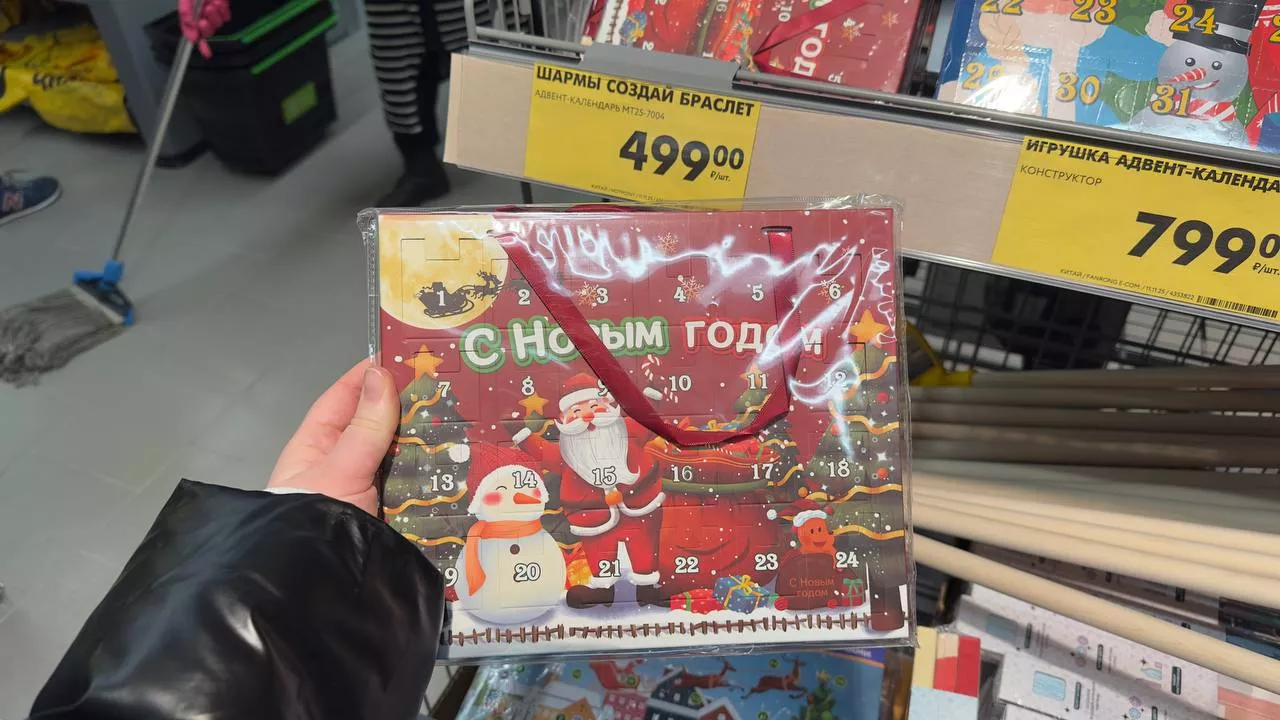 Первым в глаза бросился адвент‑календарь с 24 окошками. Каждый день до праздника ребёнок может открывать по одному окошку и находить маленький сюрприз. Отличный способ создать предвкушение волшебства и растянуть удовольствие от ожидания. Цена: 599 рублей.