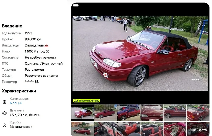 На одном из крупных сайтов объявлений появился лот для истинных ценителей. В Тамбове выставили на продажу редчайший автомобиль — кабриолет Lada «Наташа», который когда-то собрали на базе «восьмёрки» (ВАЗ-2108). За машину 1993 года выпуска просят 2,7 миллиона рублей.