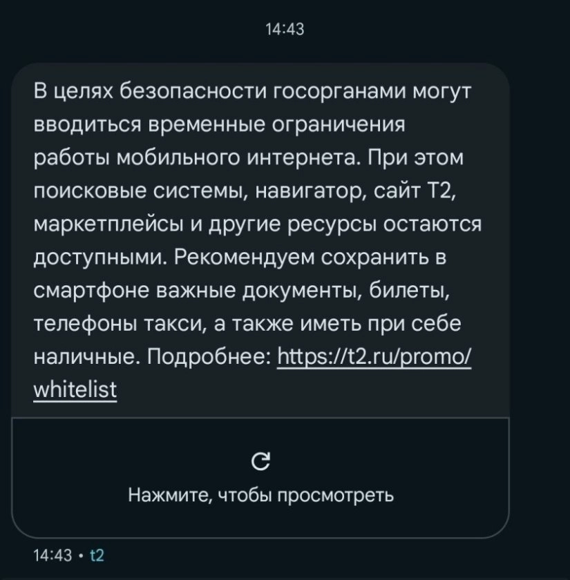 Сегодня подобные сообщения пришли тамбовчанам от мобильных операторов. Жителей просят иметь при себе наличные, записать телефоны такси, скачать важные файлы, документы на телефон.