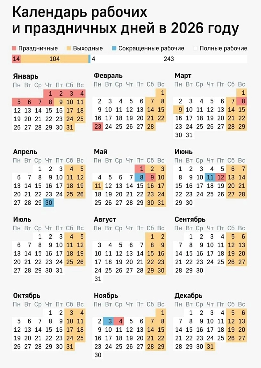 После этого у граждан начнутся трёхдневные выходные, связанные с празднованием 1 Мая. При этом последний рабочий день недели, 30 апреля, будет сокращён на один час, поскольку он является предпраздничным, сообщает ТАСС.