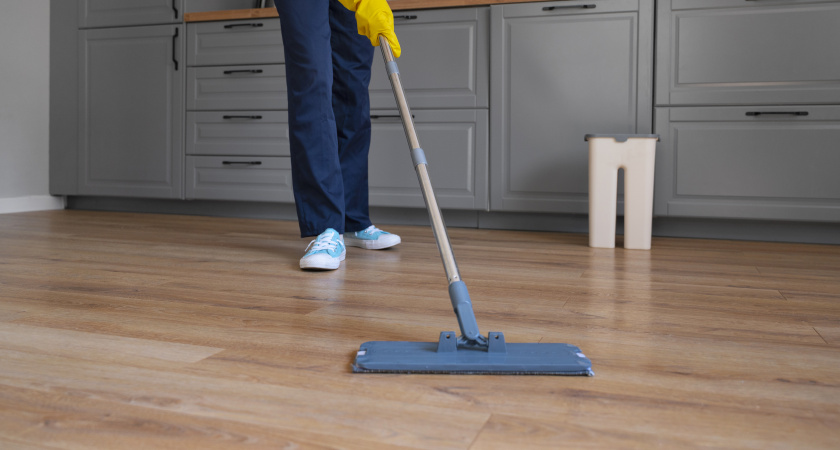 - Вымойте пол как обычно — тряпкой, шваброй или по старинке вручную.