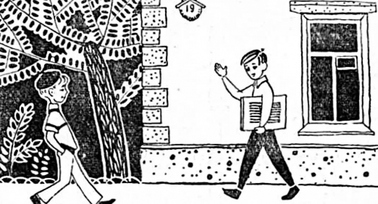 В СССР нумерация домов традиционно начиналась с нечётных чисел по левой стороне. Раз 7-й дом там же, где 23-й, значит оба мальчика движутся в ту же сторону. Вывод очевиден.