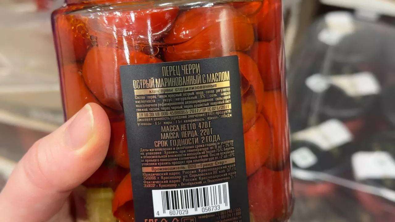 Не прошла мимо маринованного острого перца черри в масле. Для тех, кто любит закуски с характером — просто находка. Отлично заходит к мясу, холодцу и плотным праздничным блюдам. Цена — 150 рублей.