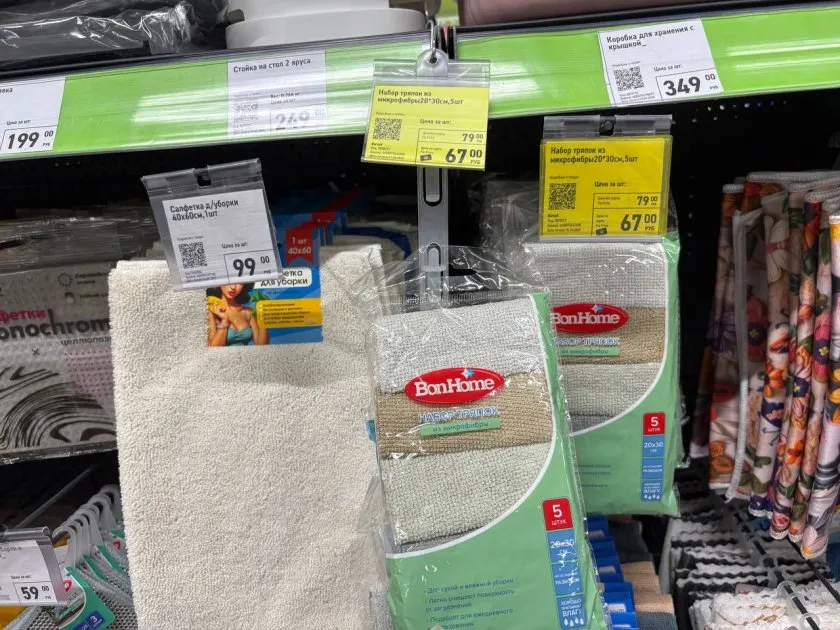 Всегда беру тряпочки для уборки из микрофибры. Нравится эта ткань - быстро сохнет и в ней меньше размножаются бактерии. За 67 рулей можно купить сразу 5 штук - очень выгодно.
