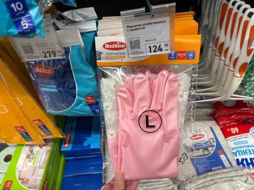 За 124 рубля предлагают перчатки с хозяйственной манжетой - просто невозможно пройти мимо! С ними даже мытье раковины выглядит эстетично.