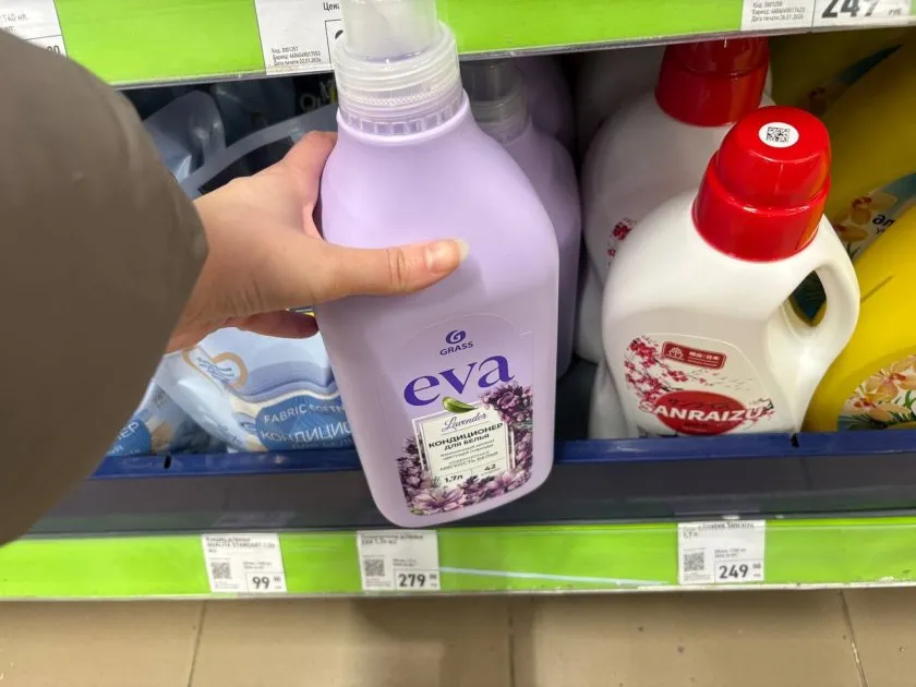 Также в Фикс Прайсе всегда беру кондиционер EVA. Запах лаванды - мой самый любимый. Он отлично выполаскивается и после него на полотенцах нет запаха затхлости.