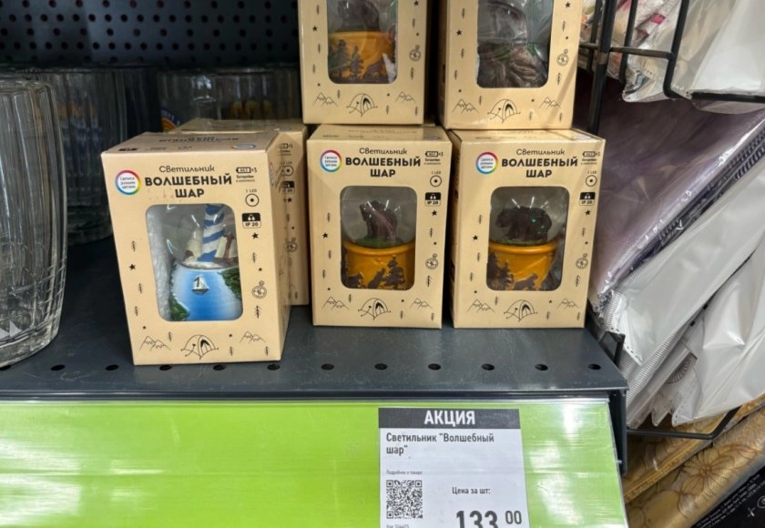 Прямо у входа я нашла светильник "Волшебный шар" за 133 рубля. Мне очень понравился мишка - сразу положила его в корзину. Батарейки идут в комплетке.