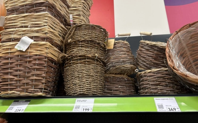 Следом я увидела подвесные кашпо. Размеры и формы разные, поэтому подойдут под любые цветочки. Но я подумала, что использовать их можно и в качестве обычных плетеных корзиночек. Сюда можно складывать бытовые мелочи вроде проводов или хранить садовый инвентарь.