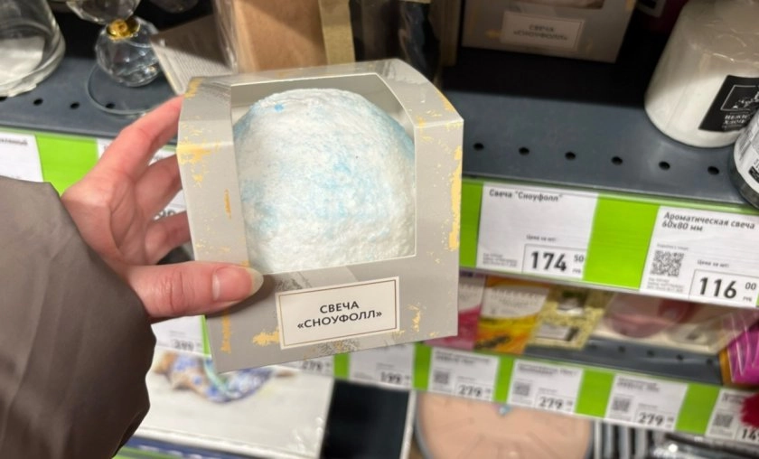 Также еще я нашла разные свечи. Больше всего мне приглянулись две. Первая - это свеча "Сноуфолл". Выглядит очень элегантно.