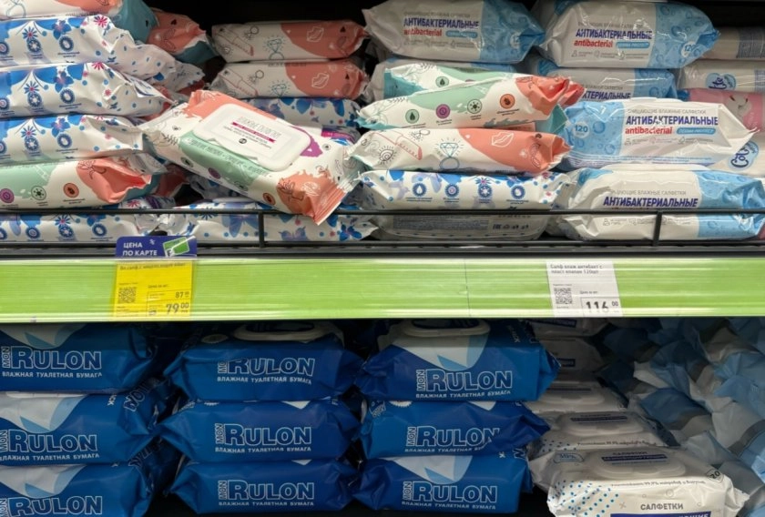Также обнаружила огромное количество влажных салфеток и полотенец. Ими лучше затариваться впрок - в хозяйстве они всегда нужны: и пыль протереть, и в сумочку кинуть. А если есть ребенок, то влажные полотенца - вещь просто незаменимая.