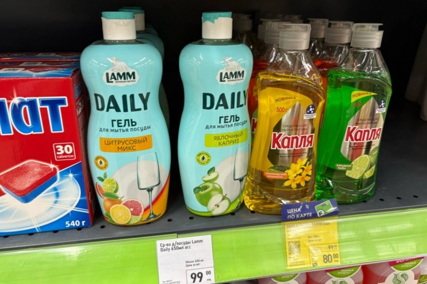 Еще положила в корзину гель для мытья посуда "Дейли" от Ламм. За 650 мл просят всего 90 рублей. Есть разные ароматы - и "цитрусовый микс", и "яблочный каприз". На маркетплейсах такие средства стоят в 2 раза дороже.