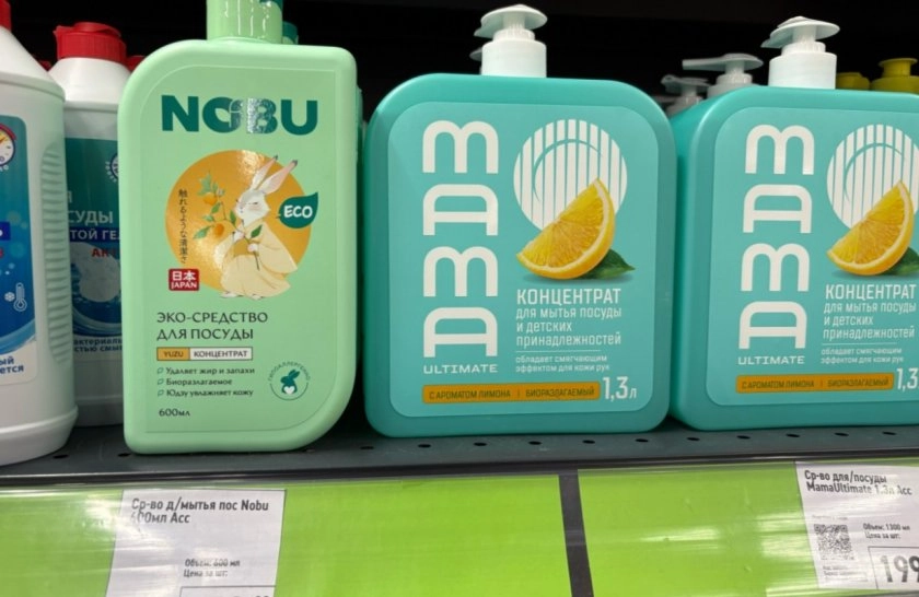 За 199 рублей нашла концентрат для посуды и детских принадлежностей. Объем - 1,3 л. Мамочкам точно нужно взять средство на заметку.